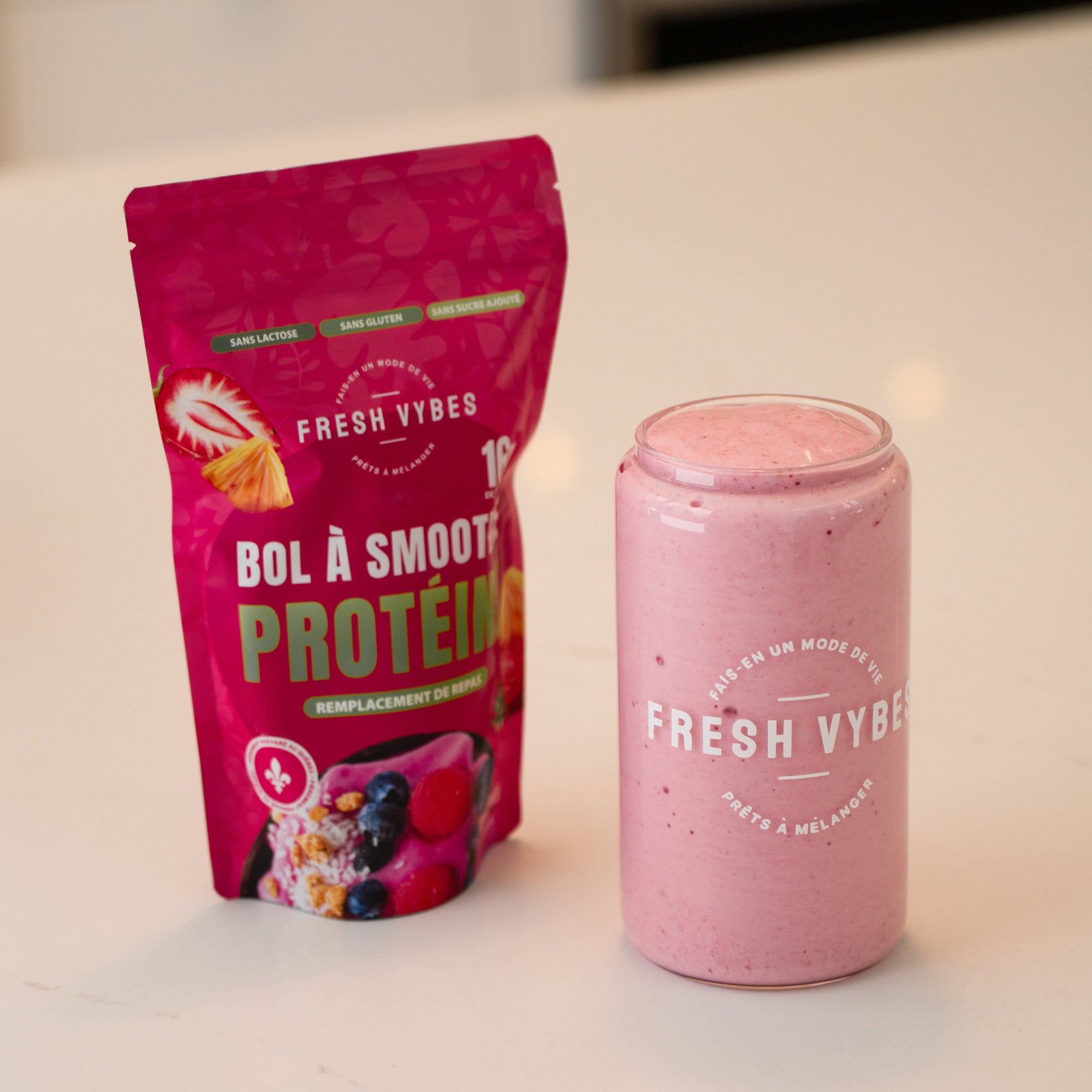 Des smoothies surgelés premium riches en protéines, prêts à mélanger.