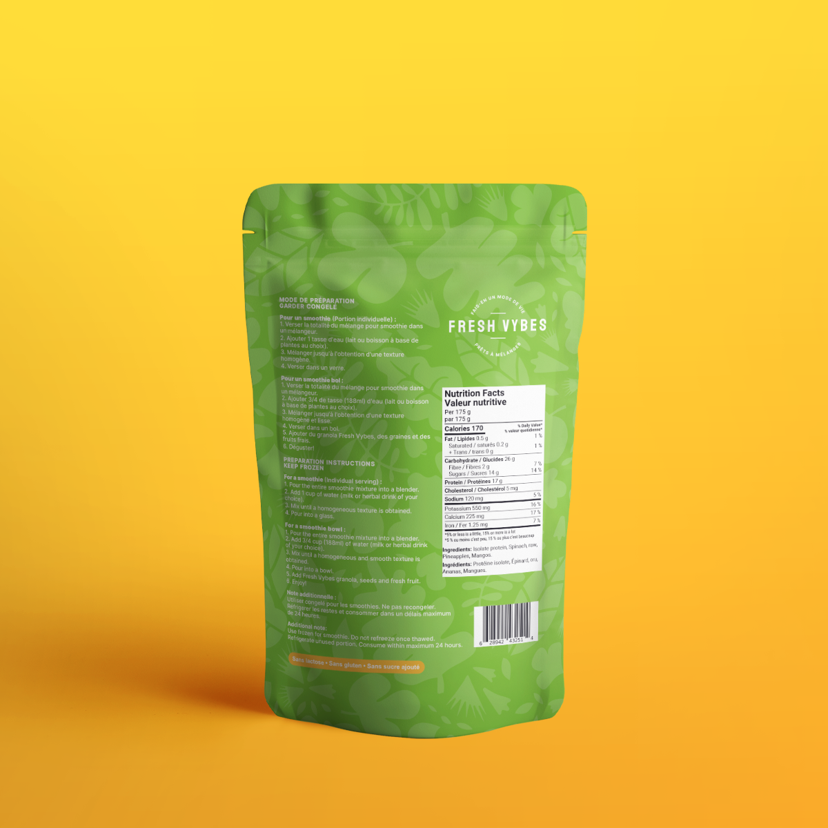 Épinards, ananas, zucchinis, mangues, protéine isolate